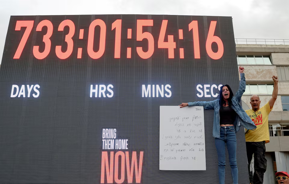 In Tel Aviv, the mood was equally strained in the “Hostages Square,” focal point of an ongoing public campaign demanding the release of the hostages who were captured in the Hamas attack that began the war two years earlier. Einav Zaugauker, whose son, Matan, is among the hostages, was in tears.